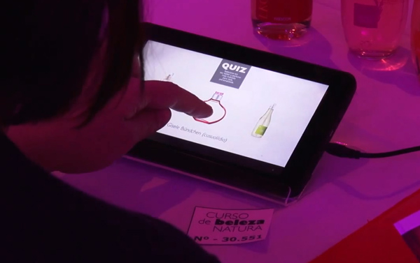 Os participantes acessam o quiz por tablet, totem ou celular, respondem às questões e recebem uma pontuação de acordo com seu desempenho.