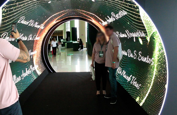 Utilizando tecnologia RFID de identificação à distância, o sistema identifica a pessoa e exibe em um painel de LED personalizado o nome, foto ou mensagem customizada, criando um cenário perfeito para selfies, registros e compartilhamentos.